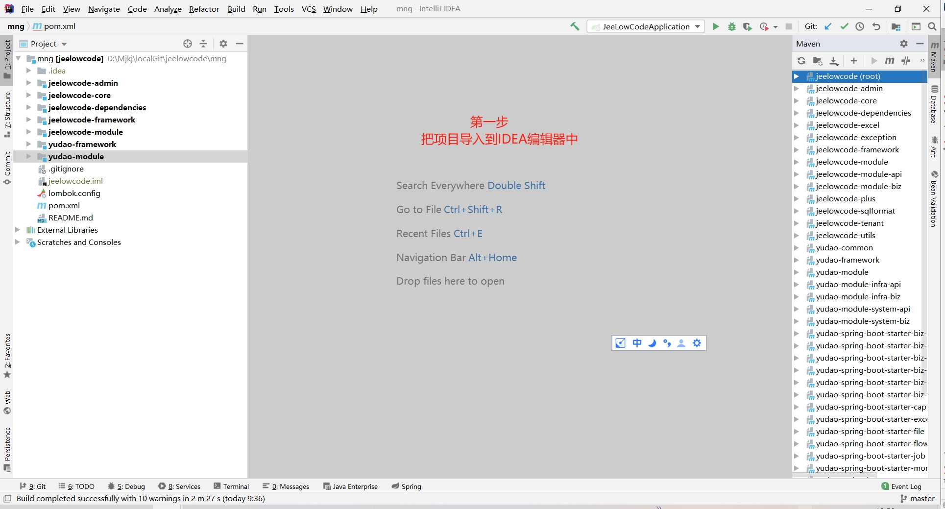 | 第一步:下载JeelowCode项目并导入IDEA中 |